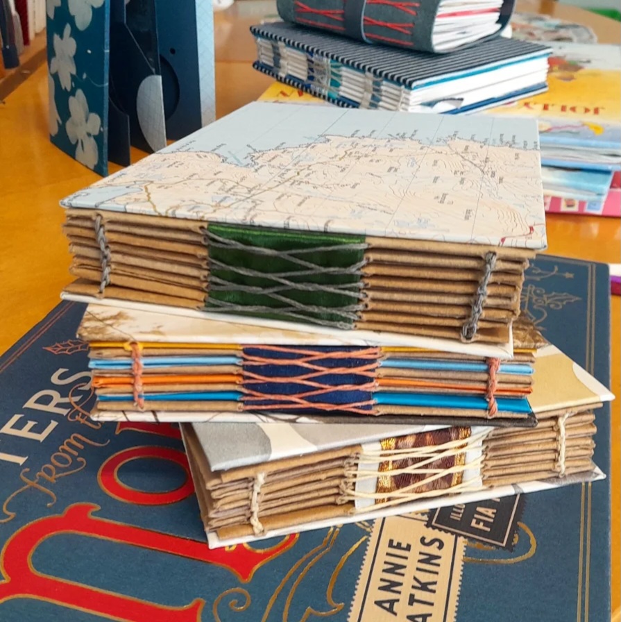 In the workshop Cass will cover how to make a set of envelope pages and stitch them together using an exposed French link stitch. You will then add a hard front and back cover before collaging onto your pages to give each envelope it’s own character.